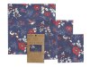 Bee's Wrap© is made with organic cotton, sustainably harvested beeswax, organic jojoba oil and tree resin. All wraps are fully biodegradable and compostable. The natural antibacterial properties of beeswax and jojoba oil help keep food fresh, and allow Bee's Wrap to be used again and again. It's easy. Simply wash with cool water and soap, hang to dry and repeat. Used several times each week, Bee's Wrap should last for roughly one year.