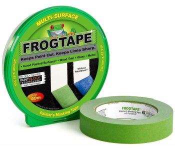 FrogTape Multi-Surface is a medium adhesion painters tape designed for use on cured painted walls, wooden trim, glass and metal. After application it will remove cleanly from most surfaces for up to 21 days (or 7 days in direct sunlight).