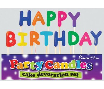 This product is a pick candle in the shape of letters that form "Happy Birthday".
