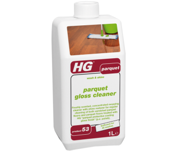 HG parquet gloss cleaner (wash & shine) (HG product 53) is a freshly scented, concentrated mopping cleaner with shine restorer developed specially for regular cleaning of both varnished parquet floors and parquet floors treated with HG parquet gloss finish protective coating (p.e. polish) (HG product 51).