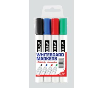 Wallet of 4 Assorted Colour White Board MarkersBullet TipLow Odour Whiteboard MarkersPack of 4