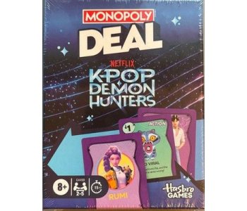 HUNTR/X is preparing for their most epic concert yet, and they need their biggest fans' help! Collect item cards featuring the objects Rumi, Mira and Zoey need to make the concert a success and seal the Honmoon! This Monopoly Deal: KPop Demon Hunters game combines the fast action of the Monopoly Deal game with characters and themes from the hit Netflix film. Use action cards to go viral, take on the spicy challenge, deploy Bobby to watch out for trouble and more! Players add fan cards to their fan club to pay other players who go after them.