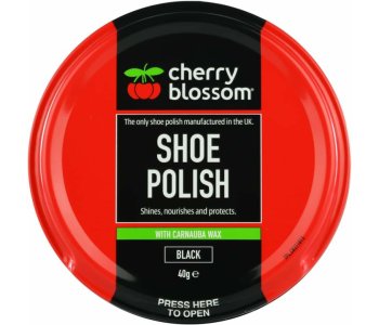 Cherry Blossom Shoe Polish Black 40gShines, nourishes and protectsSafety WarningCaution: keep out of reach of children. Use only as directed. If swallowed: get medical attention/advice. Repeated exposure may cause skin dryness or cracking.