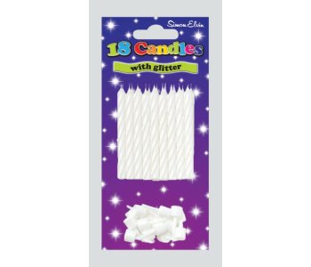 White Glitter Spiral 18 Cake Candles & Holders